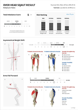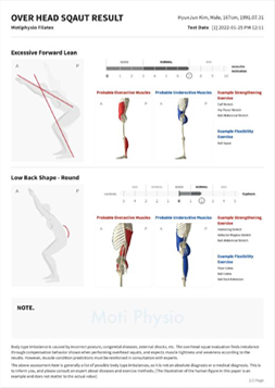 Moti Physio運用AI技術進行靜態與動態分析,繪製骨骼結 構與肌肉張力,並透過數據呈現關節與肌肉的風險指標。
