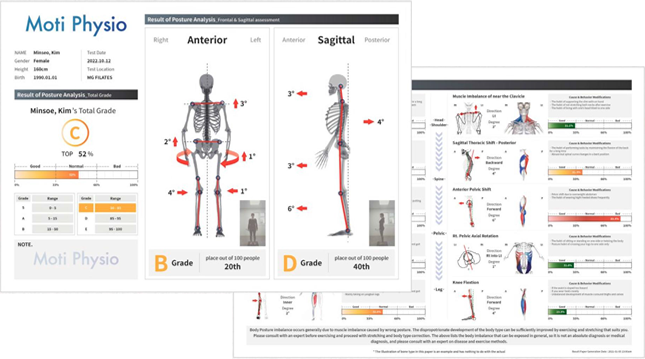 透過3D影像可視化,Moti Physio不僅解釋身體失衡問題,還提供矯正建議與運動方法,幫助理解姿勢改善的重要性。